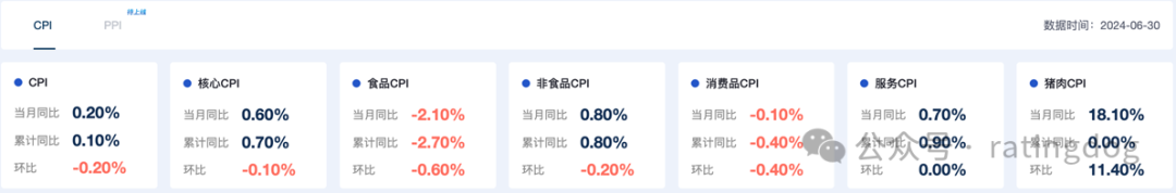 关键指标展示中国CPI、核心CPI、食品CPI等常用指标的最新当月同比、累计同比以及环比数据,帮助用户快速掌握通胀相关的最新趋势