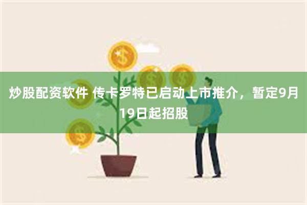 你的位置:正规实盘配资公司-股票实盘交易-真正实盘配资 > 股票实盘交易 > 炒股配资软件 传卡罗特已启动上市推介,暂定9月19日起招股