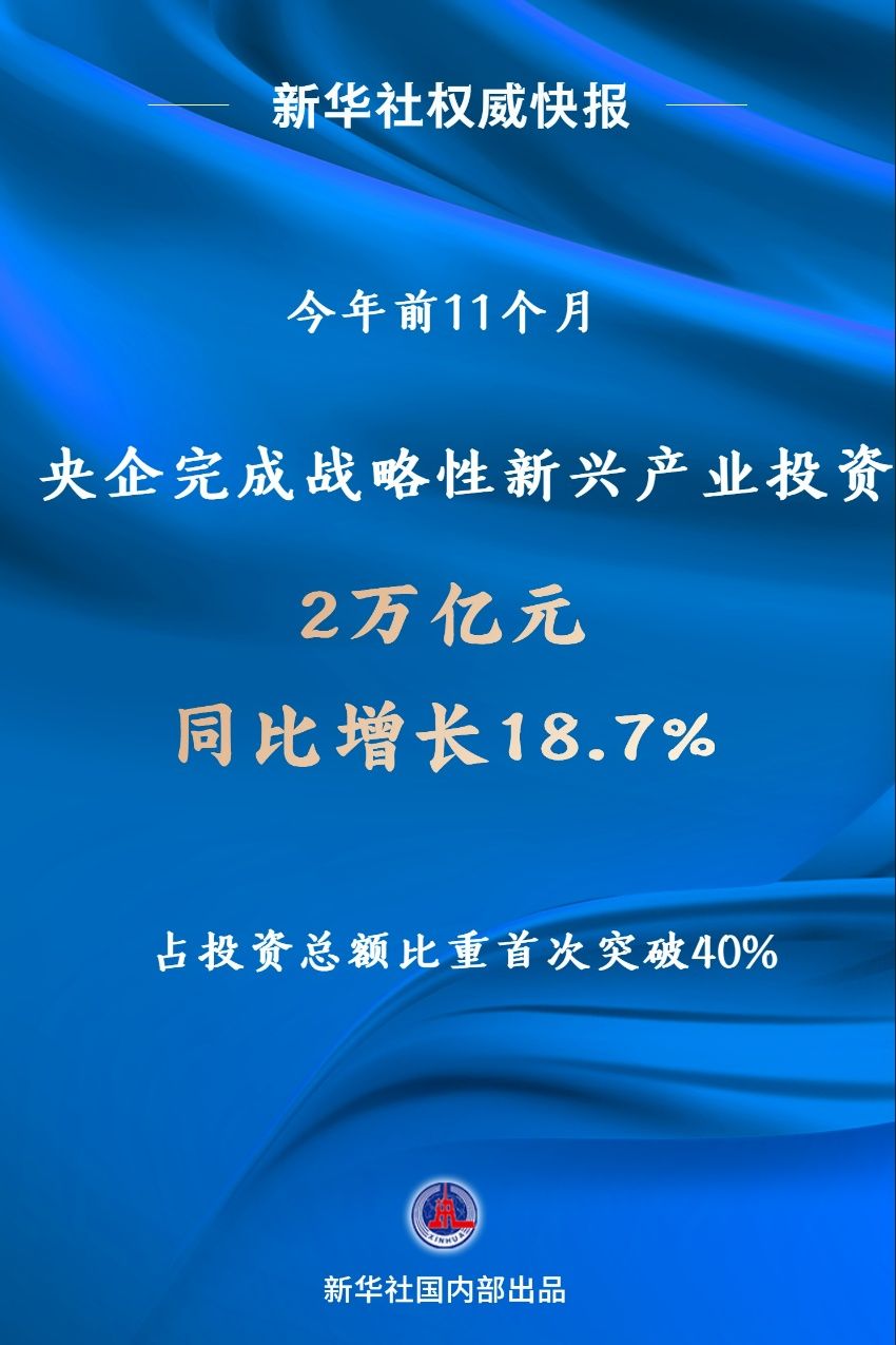 一方面,中央企业新兴产业布局节奏加快。数据显示,1至11月央企完成战略性新兴产业投资2万亿元,同比增长18.7%,占投资总额比重首次突破40%。